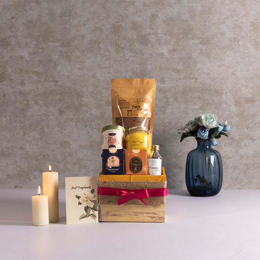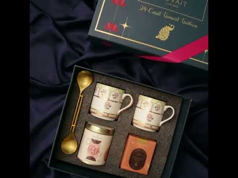 Our luxury gift boxes pair these gourmet essentials with handcrafted porcelain, ceramic, and brass tableware. We have 24k gold-printed ceramic and porcelain pieces and heirloom-quality keepsakes like brass tumblers, tea strainers, spoons, and honey dippers. Each piece is artisan-made, inspired by Indian art, culture, and tradition, making every hamper unique.