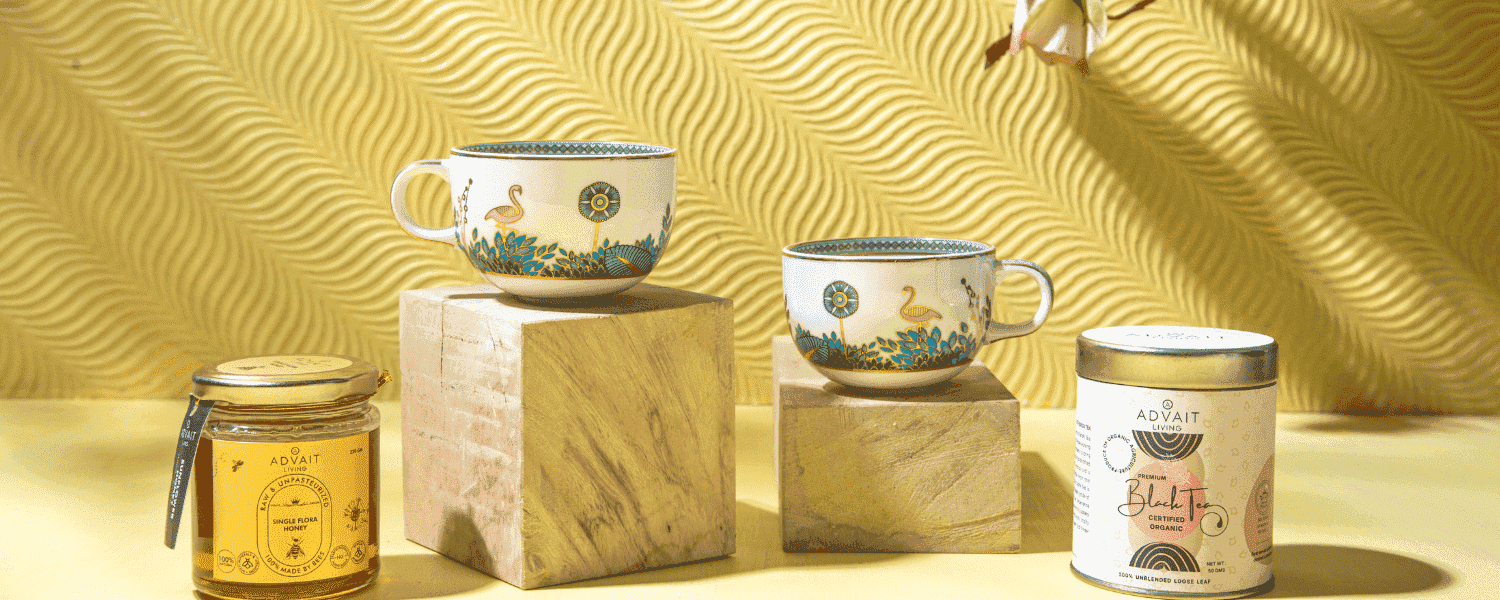 To order the Āśaya Tête-à-Tête Artisanal Tea Gift Set in bulk, reach out to us via WhatsApp at +91 90848 94625 or email at advaitliving@gmail.com. We offer customization options, including personalized gift tags and messages for that extra special touch. This luxury Diwali gift hamper is ideal for corporate gifting, weddings, anniversaries, festivals, and other significant occasions where a thoughtful gesture speaks volumes.
