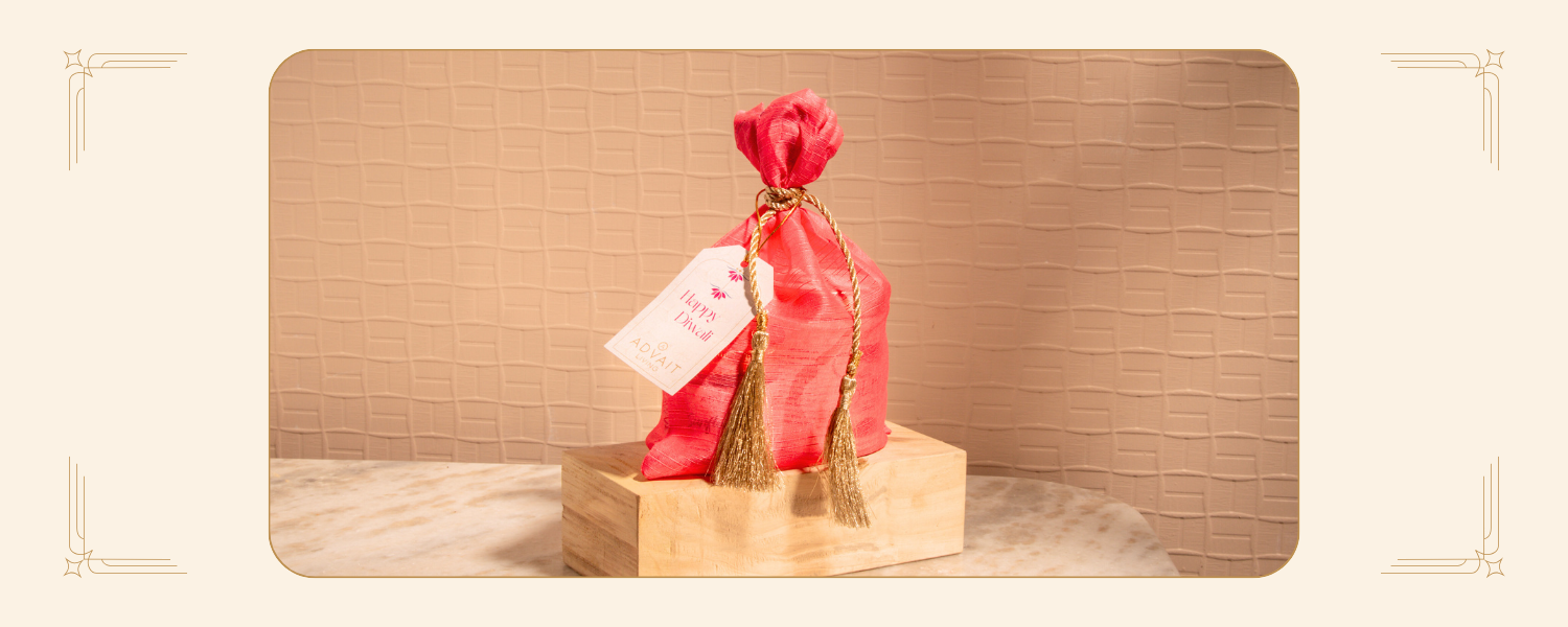 Shipping: Your Cha Festive Potli will arrive in perfect condition. We've taken extra care to package it securely for shipping. Spread joy and warmth this festival with our Cha Festive Potli.