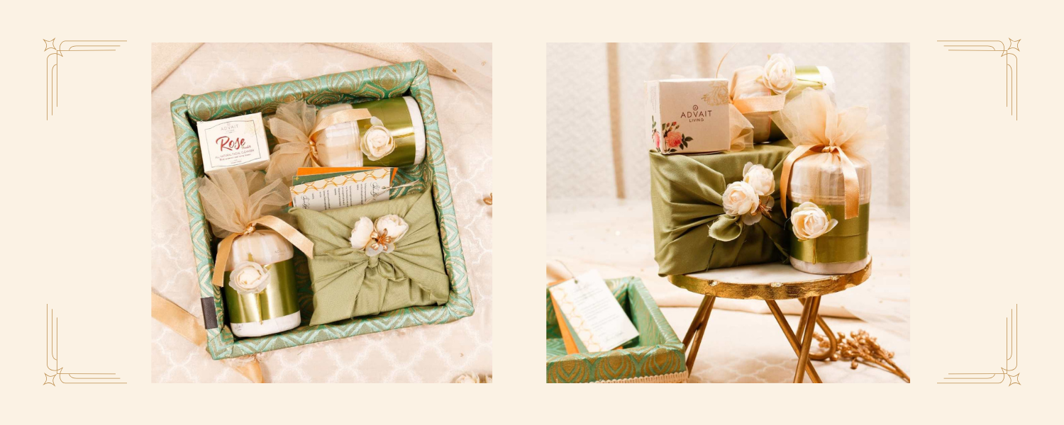 - Kiesha Brocade Handmade Tray: In collaboration with Kiesha, our skincare gift hamper ‘Nourish Your Skin’ comes with a stunning handcrafted tassel brocade tray, beautifully housing those natural body care products.